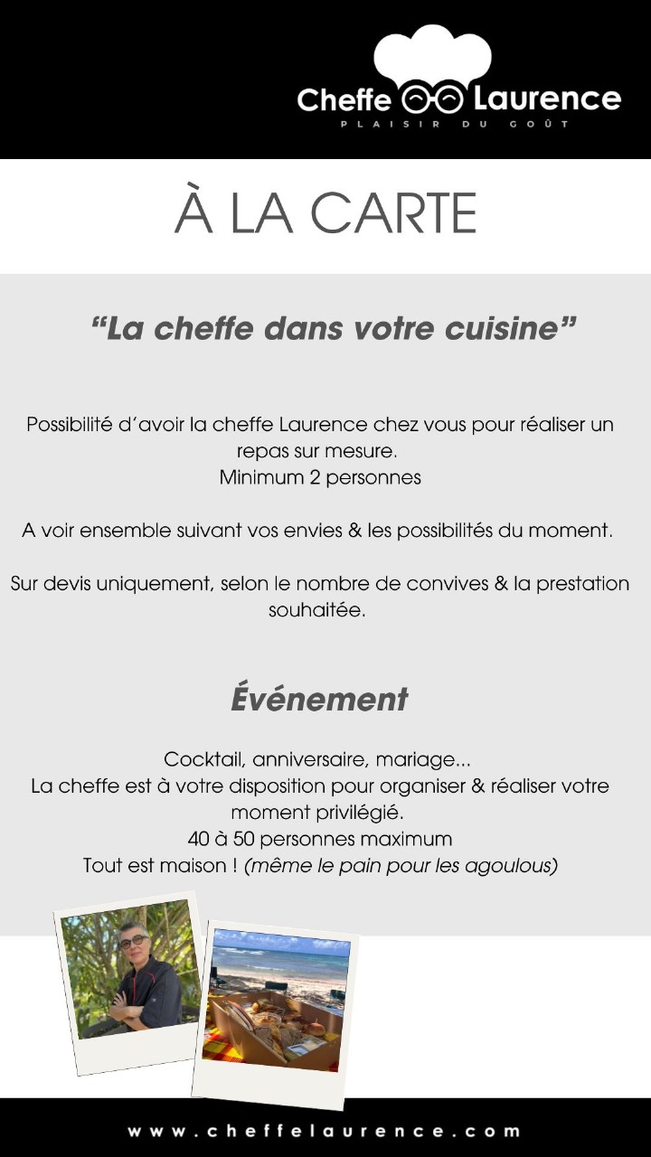 Cheffe Laurence dans votre cuisine Invitez Cheffe Laurence dans votre cuisine et transformez votre repas en une expérience culinaire unique.Du…